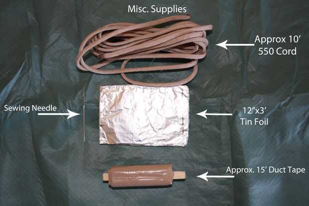 Tomó un poco de experimentación a figue la pieza "tamaño correcto" de papel de aluminio para agregar pero 12 "x 3' parece ser el mejor ajuste para el tamaño de contenedor que iba a ponerlo todo en. Usted puede hacer un bote pequeño de agua hirviendo y otro para cocinar y un aprox. 12 oz "Copa" con él y tienes algo refelctive para señalar si es necesario.