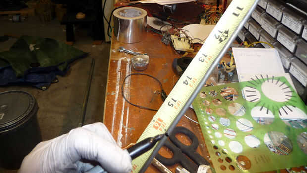 A continuación Marque dos puntos en la forma de U de 1/2" en cada extremo. Entonces usted dobla éstos de tal manera que los dos extremos de la forma de U se estará apuntando hacia afuera. Estos dos extremos realizar los orificios de 3/8" del crisol desde el interior del crisol.