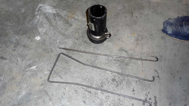 Para la herramienta, pour tome otro pedazo de 3/16" varilla de acero y simplemente doblar un gancho en el extremo.