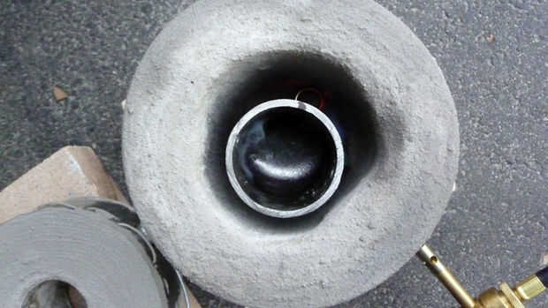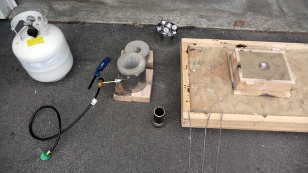 Ahora usted está listo para verter el aluminio en el molde (o recipiente de arena que contiene el patrón de espuma). De perdido de la espuma, se vierte en la herramienta principal de presión. Usted quiere verter tan consistentemente como sea posible en la herramienta principal de presión, hasta que note que no hay metal más es ser aceptado (no dejes que el desbordamiento de la herramienta cabeza de presión).