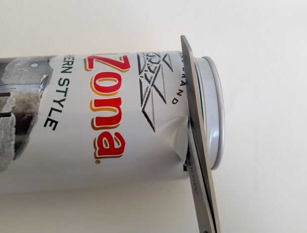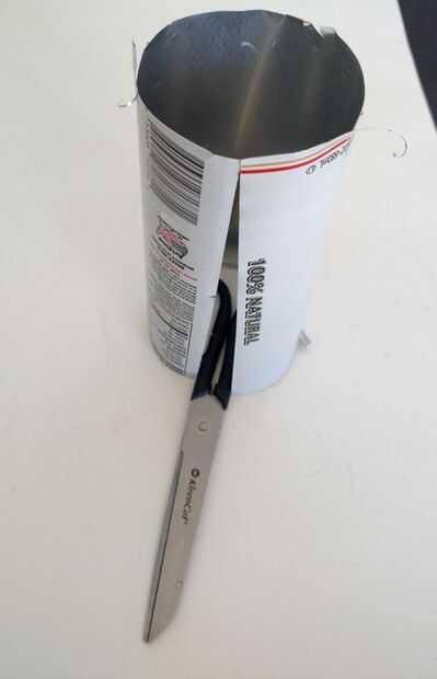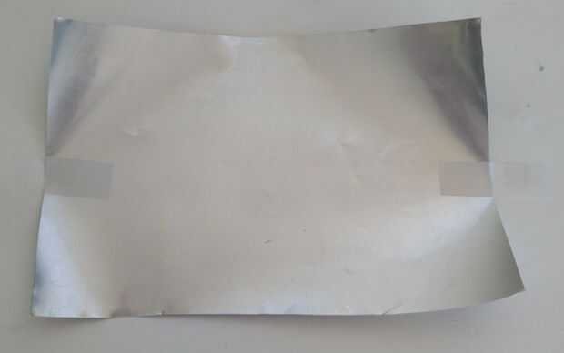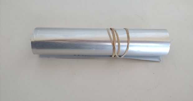 7. Rodillo de la hoja rectangular de la lata adentro hacia fuera y seguro con la goma. Esto ayudará a alisar hacia fuera la bandeja de lo que es más fácil trabajar con para no mantener balanceo para arriba en usted.