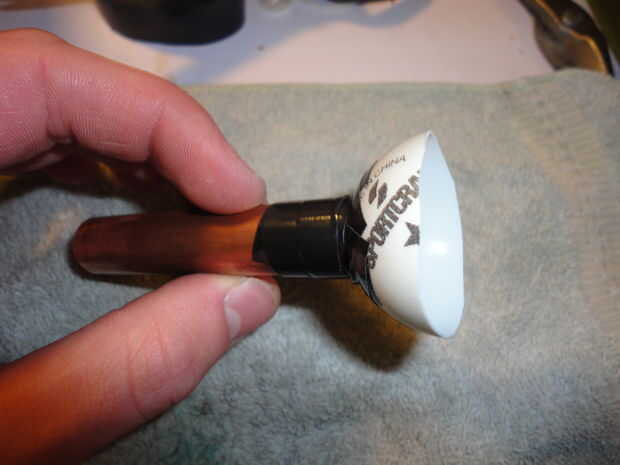 en primer lugar, dibujar un óvalo delgado (perdón por la falta de fotos). a continuación, dibuja dos líneas desde los extremos del óvalo. Luego, traza una curva de una línea a otra. por último, dibujar un uno interior más pequeño para la etiqueta, ex