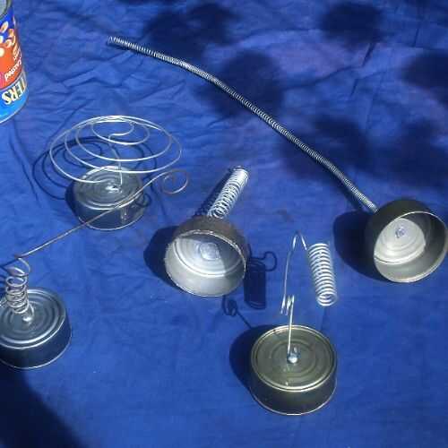 Perfore un agujero en el centro de la lata y el resorte del perno a la lata. Golpeó con un palo y se vaya. Estos son latabonkers de nivel de entrada.