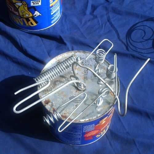 Puesto que la boca de la lata es demasiado grande para cubrir con mi mano para crear un efecto de Wah-Wah, llego una similar deformación tonal tirando uno de los resortes con mi dedo pulgar, que deforman el fondo de la lata y distorsiona el sonido. Tirando hacia abajo que primavera afecta el sonido de todos los resortes ya que todos ellos son amplificadas a través del contacto con el piso mismo puede superficial.