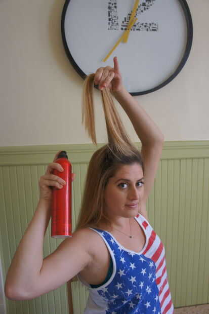Aplicar alguna laca para el cabello a ambos lados de la sección.