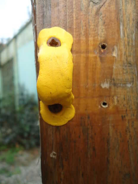 Cuando cierre de piezas de la cerradura de la puerta rompe o se perdió, Sugru se convierte en la solución más inmediata, también por mucho tiempo. Compruebe la posición correcta de la cerradura del cierre, modelo de la goma y se fijan las dos extremidades a la madera. Por seguridad se ha utilizado dos tornillos de cabeza avellanada para permitir una fijación perfecta. Después de 24 horas no cambió la forma en que el material y el seguro puede ser la unidad en posición cerrada, para que no se puede abrir la puerta.