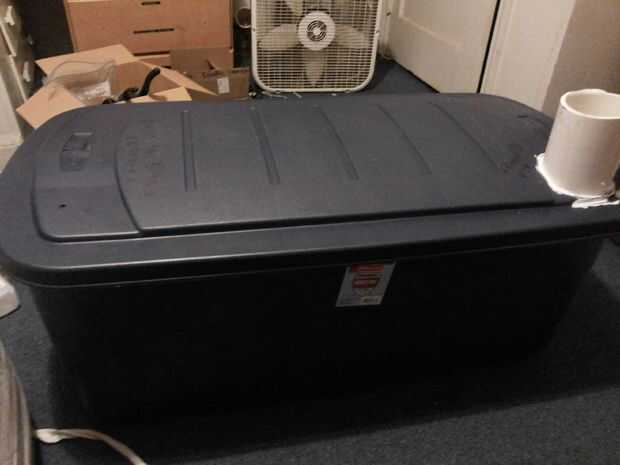 • Un cubo de plástico de 50 galones (42,7 x 21,4 x 18 pulgadas)
