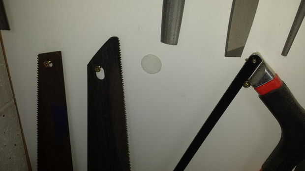 Utiliza el objeto como una guía y entonces marcas poner tornillos en el. Lo hice con los estantes para no hacer los agujeros innecesarios. Para los objetos más pequeños usé clavos.