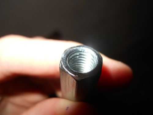 1. Sostenga el espaciador tuerca junto al árbol. Usted verá cuánto de la porción roscada tienes taladro lejos.