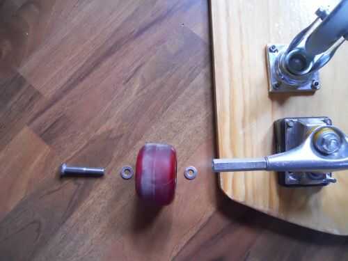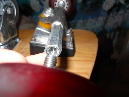 Como se explica en el paso 2. ahora necesita atornillar el tornillo con la rueda en el eje hueco. Usé a los espaciadores de 1 mm, sin ninguna razón en particular.