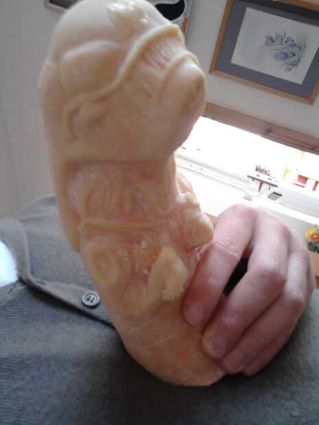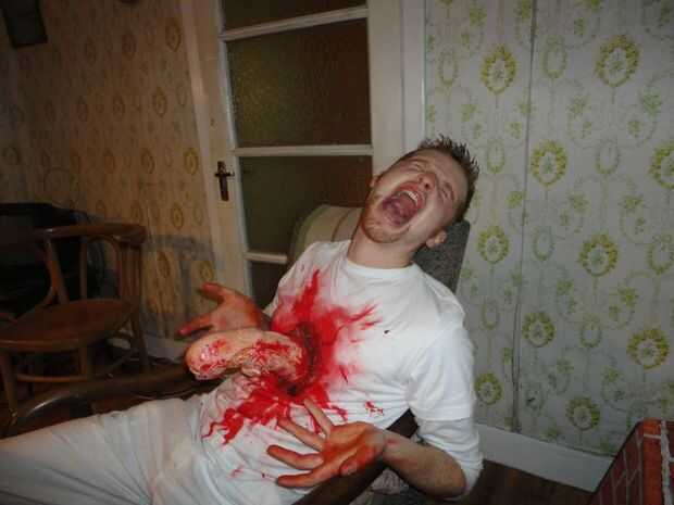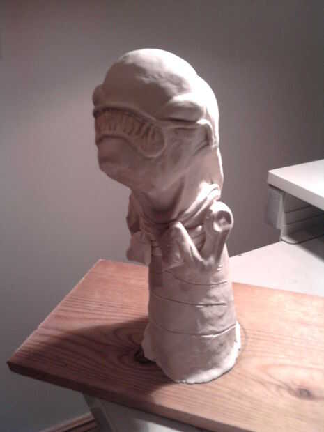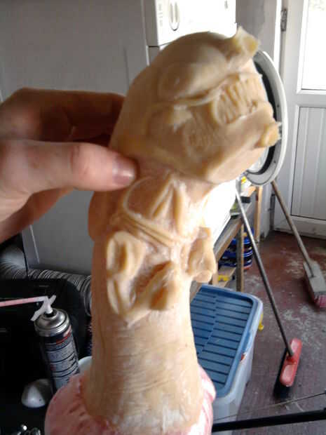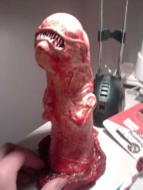 Se trata de un látex chestburster alienígena que fue esculpida por con plastilina (los dientes son palillos) luego moldeada en yeso. El molde entonces se llena hasta el borde con el látex, a alrededor de 3 horas y luego el látex se vierte hacia fuera para dejar una piel húmeda en el molde. el látex seco y me lo quitaron del molde y hay el chestburster. A añadir un poco de látex para cualquier tipo de pintura, (acrílicos es el más común) para mejorar la adherencia de la pintura que el chestburster para hacer sólido el chestburster compré baratos constructores espuma que funciona muy bien porque llena en cada brecha en expansión. Luego consiguió un pedazo de canalones, lo calienta y había moldeado a la forma de mi pecho. Clavado un 'pico' de la pipa para el chestburster pegarlos en. Corte dos ranuras en el moldeado plástico y luego utiliza cincha y un clip de la bolsa para apretarla contra mi pecho. Cortar una hendidura en mi camiseta, rocía un poco de sangre roja y listo, hay un extranjero explotar de mi pecho! También hizo un pequeño cofre se encuentra debajo el chestburster, sólo para el adicional de bits o ' gore de la herida.