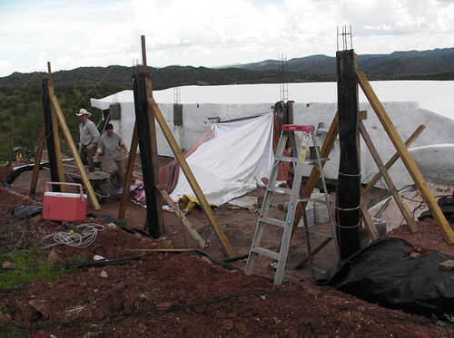 - Vierta concreto en la base, hasta justo por encima del nivel de suciedad. Esperar un par de días antes de continuar, para que el concreto se puede establecer.