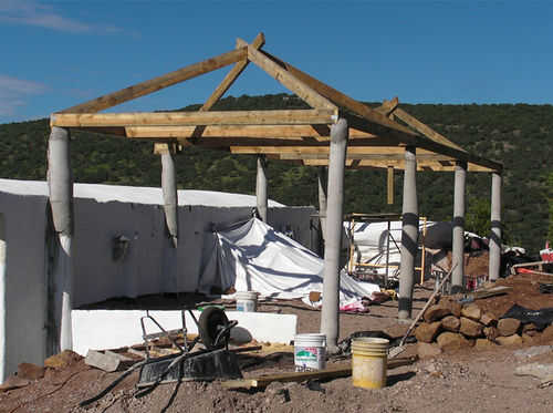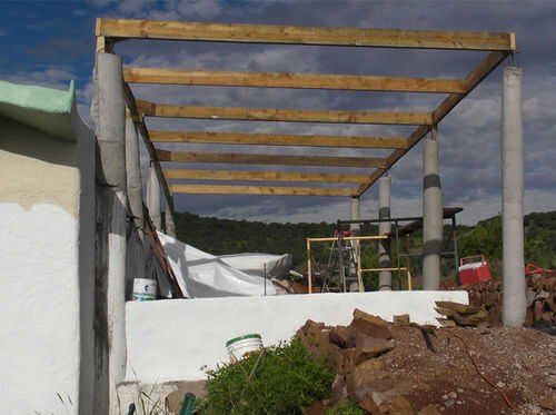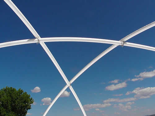 - Para el techo de los tanques de agua, se utiliza 3/4" PVC con 1/2 barras de refuerzo interior. Trabajó muy bien. Es barato, ligero y fácil de trabajar. Sin embargo, no es tan durable y no queremos caminar en él. Es una buena opción para un pequeño tejado que no necesito para sobre ponerme, y que desea ser curvo (arco o bóveda).