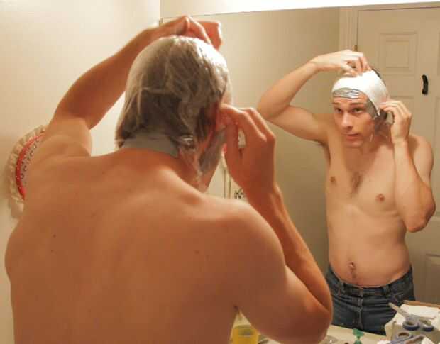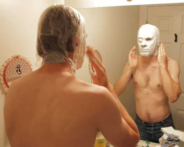 Yeso puede ser peligroso en la piel. Es una práctica común para moldear una cara con tiras de yeso, pero lo químico lejía (hidróxido de sodio) es peligrosa, por encima de un cierto porcentaje. Yeso parece ser un poco de una zona gris, no es totalmente seguro, por lo que sería mejor moldear la cabeza con agua y harina de papel maché. O, por lo menos, hacer la primera capa de tu molde con papel maché y entonces construir con tiras de yeso. Así, el yeso nunca toca la piel.