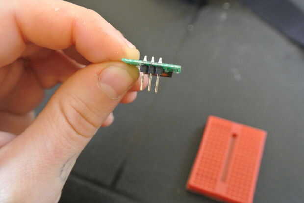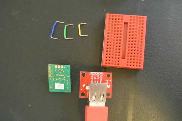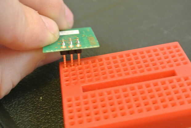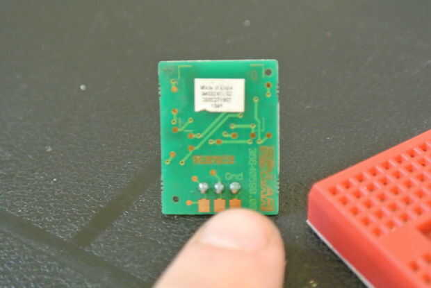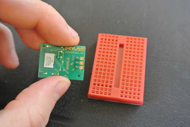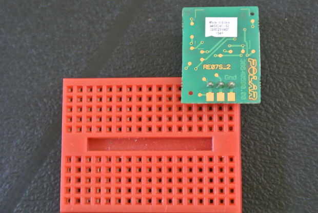 Para empezar, realizará su receptor Polar T34 (viruta verde) y montarlo en la protoboard (rectángulo rojo) como se muestra a continuación. Asegúrese de que usted ha hecho una conexión antes de proceder.