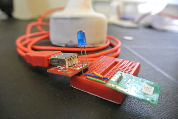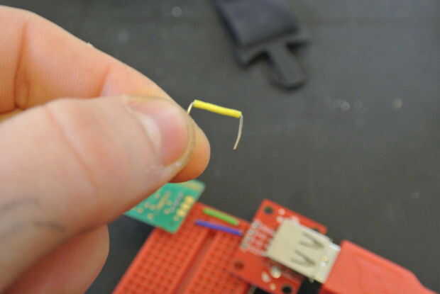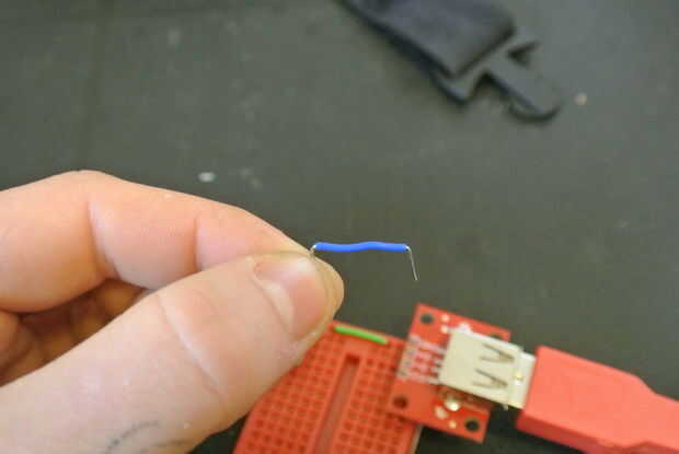 - Tome el segundo cable y conecte D + de breakout junta a la unidad frente al final de la tierra en el lado del receptor Polar de protoboard.