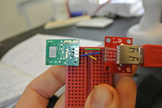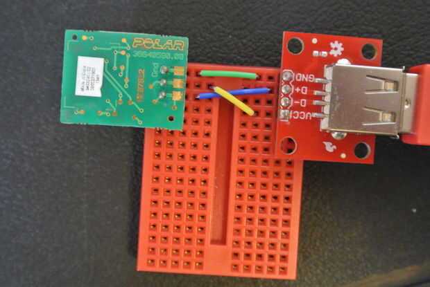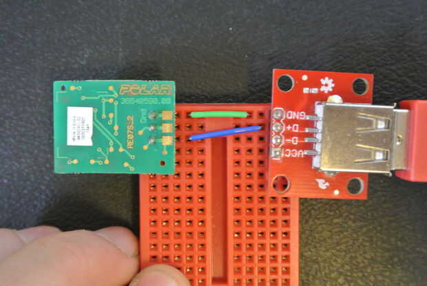 - Tome último cable y conecte el VCC de breakout junta al medio receptor Polar.