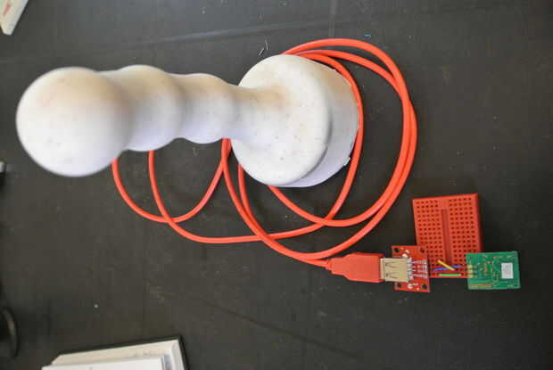 Después de configurar tu protoboard, entonces usted necesitará conectar el USB de la placa breakout. Tomar el USB conectado a la tarjeta de arranque y conecte el extremo opuesto del cable en el puerto superior del MOD. Asegúrese de que ha conectado bien tu USB. Después de realizar esta conexión, entonces estará listo para la detección del latido del corazón de programas a tu MOD!