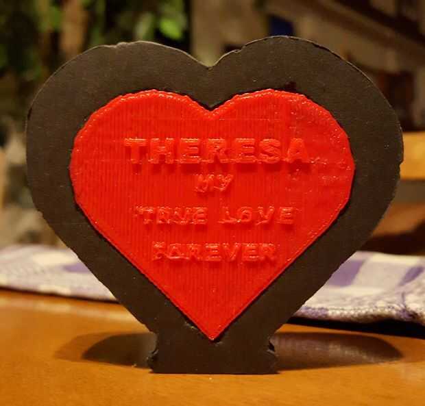 En el último momento que me decidí a hacer un San Valentín utilizando un 3D impreso corazón que hice en Tinkercad.