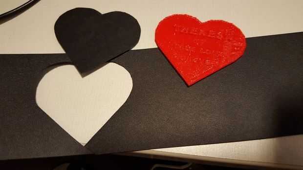 Usé el corazón impreso 3D para trazar la forma necesitaba en algún papel grueso y usa unas tijeras para cortar.