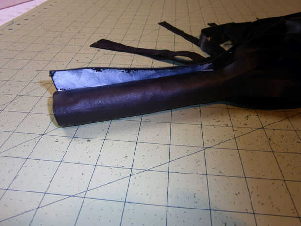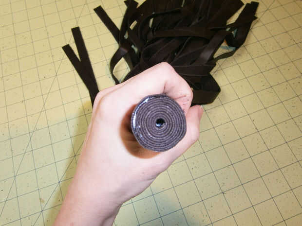 Enrollar el cuero tan apretado como sea posible en el área de pegado. Tratar de que el primer rollo tan pequeña como sea posible para que el mango es redondo y no ovalada en lugar de otro.