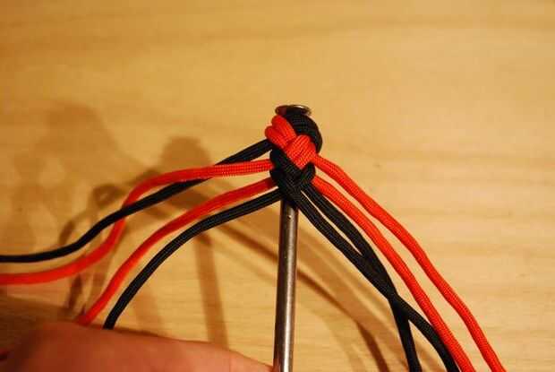 -Los extremos del filamento de trabajo alineados con las restantes 3 hebras de la derecha.