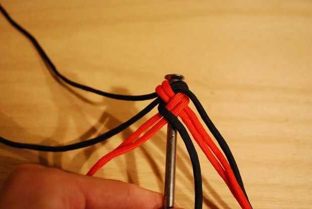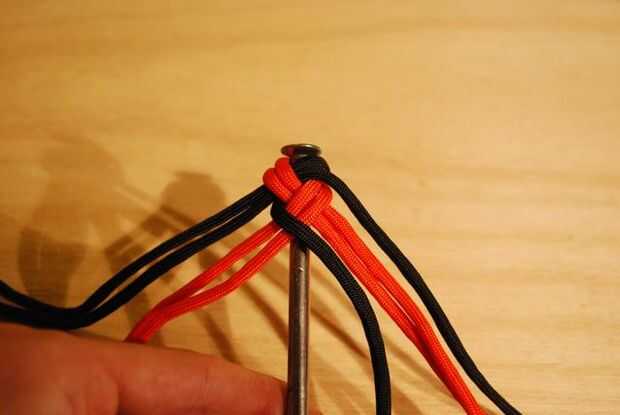Ahora, hacer lo mismo con el filamento de la parte superior del lado izquierdo, pero en sentido inverso: