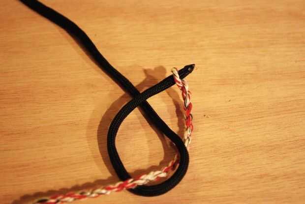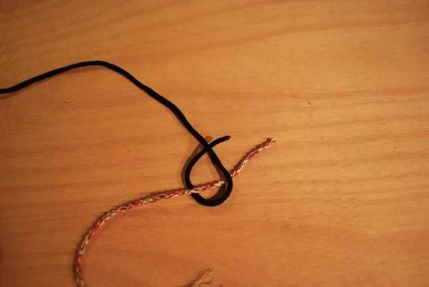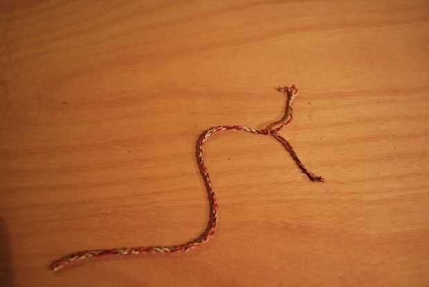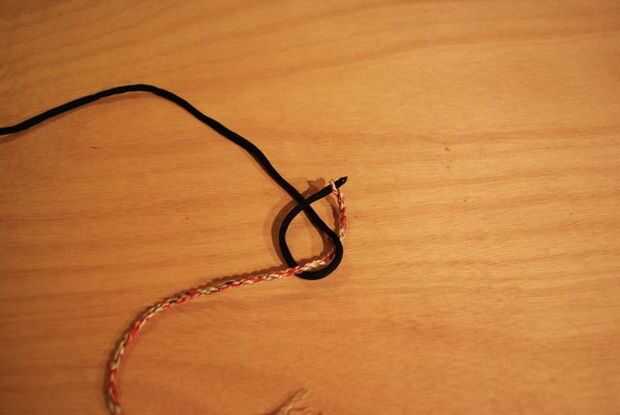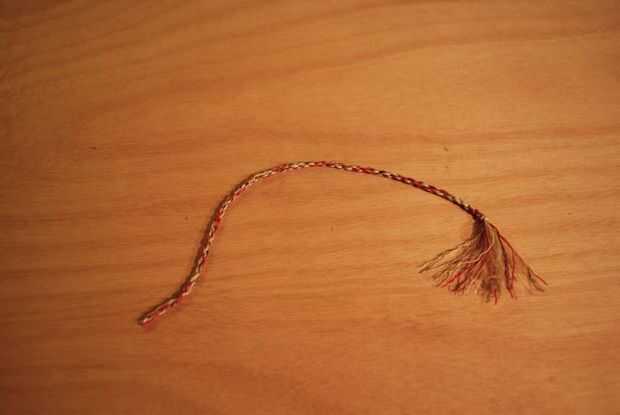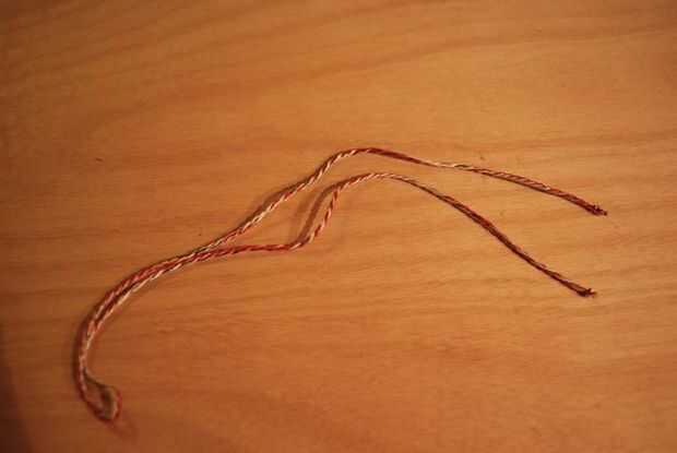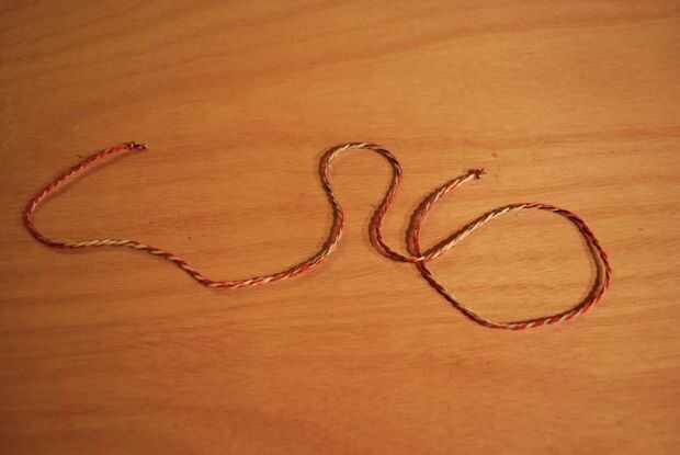 -Doblar por la mitad, luego tuerza los dos hilos como lo hizo al hacer las entrañas.