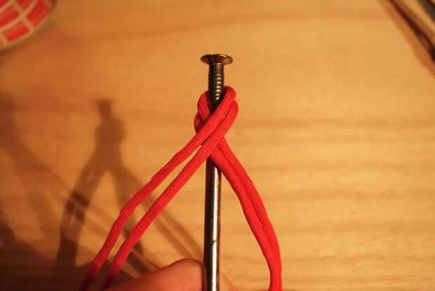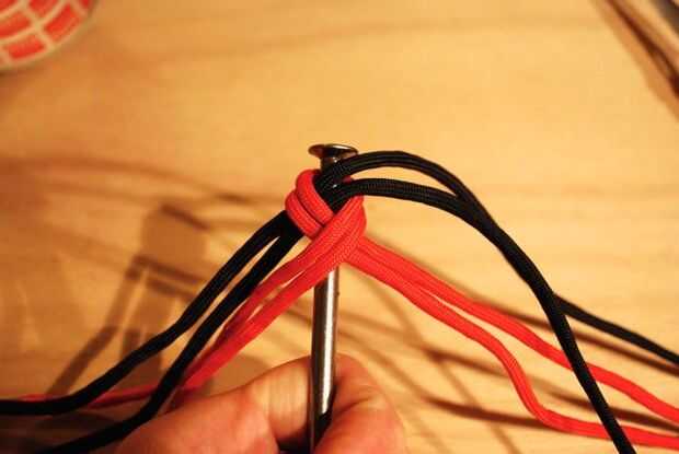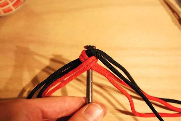 Conseguir la longitud apropiada de paracord para hacer esta línea 8 ronda de trenza: