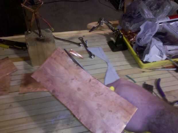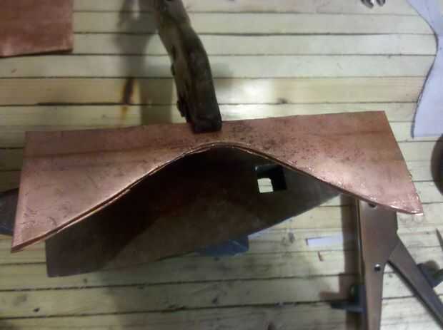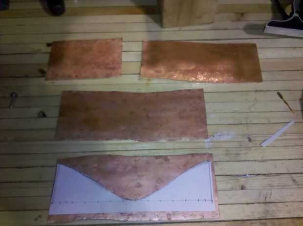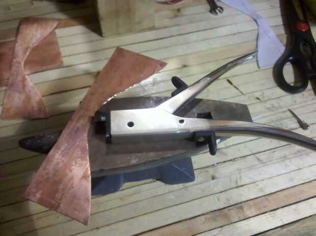 Utilizando recortes de estaño o algún tipo de tijeras, cortar el patrón lo mejor posible. La curva apretada puede ser complicada, uso una cortadora para terminar la curva si es necesario. El cortador de la cortadora golpea un poquito de metal a la vez y puede hacer cortes muy ajustados.