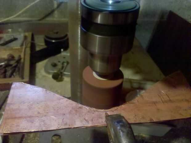 Se puede ver una rueda de molino de 1.5" tiraron en mi taladro. Un taladro es una necesidad de tienda. El que uso más es de $50 en el transporte de mercancías del puerto y funciona bien. En alta velocidad centrifuga a 3100 rpm, que es una velocidad respetable para moler y pulir.