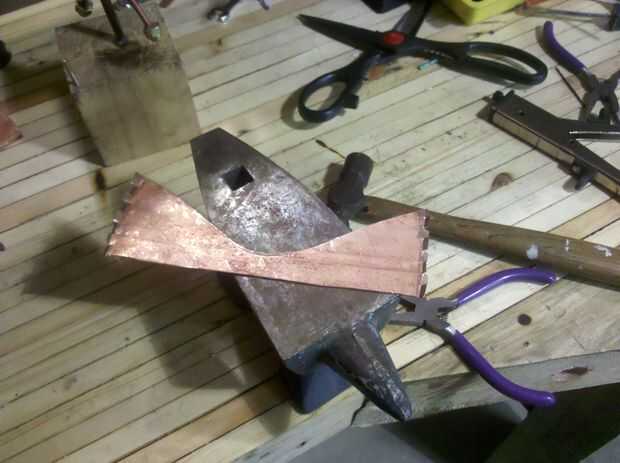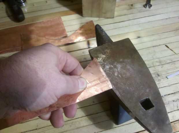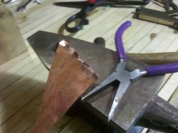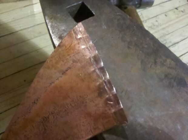 Para ello estoy utilizando un estilo de articulación llamada 'Cramping'. Con un hacinamiento de la costura de los bordes son martillados a mitad de su espesor normal y luego se hace una serie de cortes a lo largo de uno o ambos bordes.