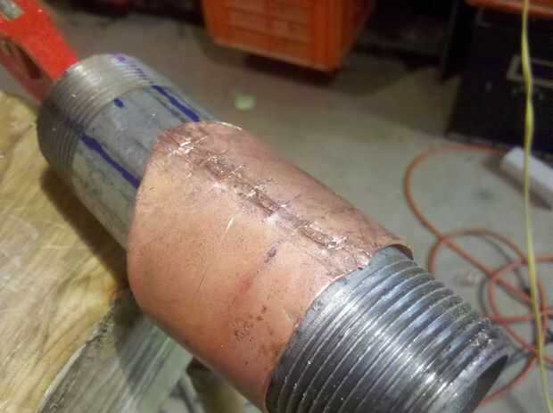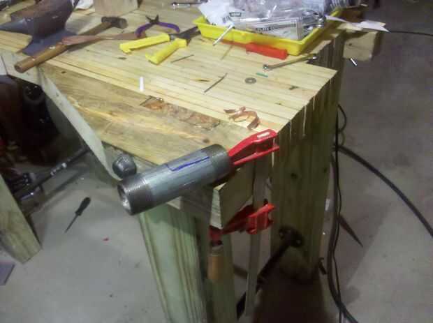 Para formar la Copa utilizo una pequeña longitud de la pipa de acero 1 1/4 de pulgada como un mandril. No es importante que en este momento una forma perfectamente redonda. Más importante es conseguir que los bordes 'encogidos' malla correctamente. Si las cosas no son perfectas, no lo sude. La muela puede expiar de muchos pecados.