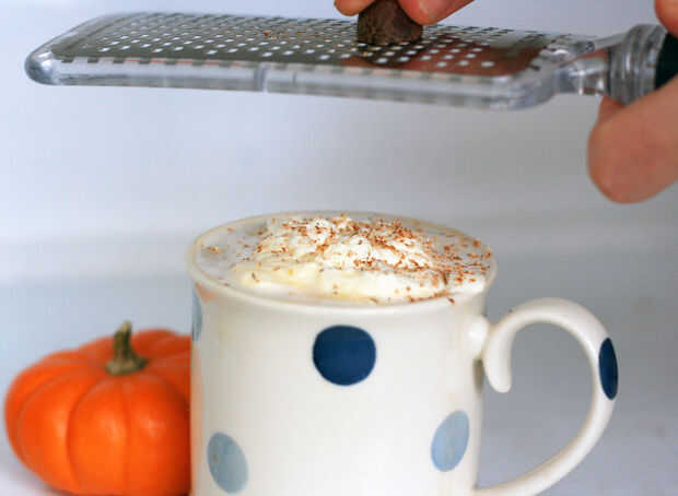 Viste tu calabaza especia latte con algunas crema recién batida, una rama de canela y algunos afeitado fresco nuez moscada molida moscada, y solo has demostrado Starbucks donde pegarlo!
