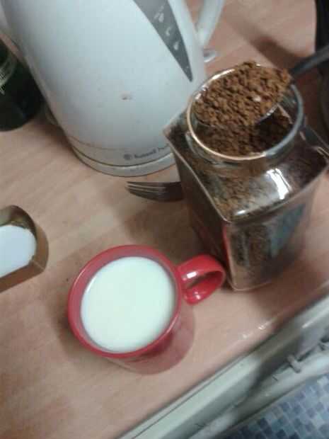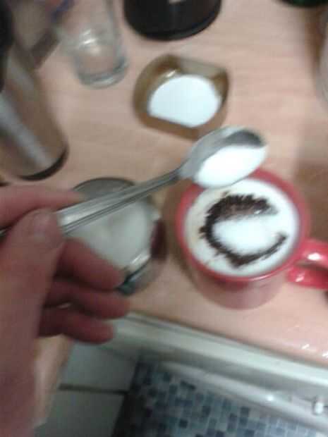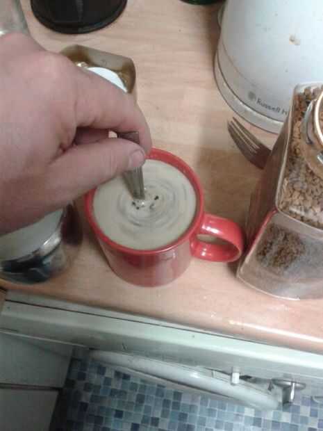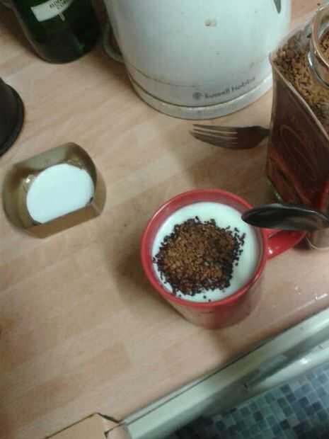 lugar de gránulos de café en la leche (no hundirse) Si desea añadir azúcar ahora lo Espolvoree sobre los gránulos de café. Agitar vigorosamente