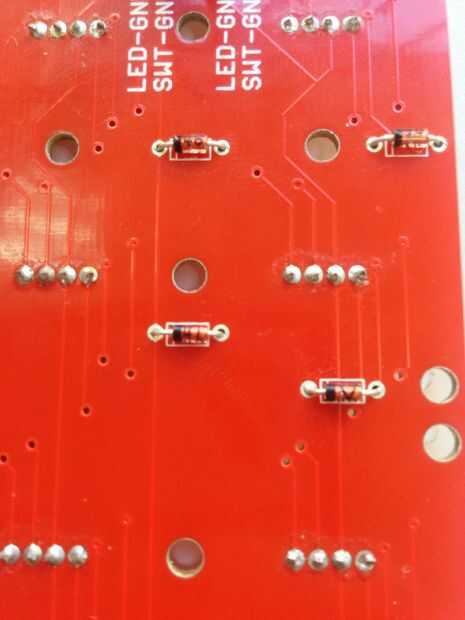 Solo soldar los diodos de la placa Breakout. Asegúrese de que el diodo en la posición correcta, poniendo la cara negra en la posición correcta de la soldadura.