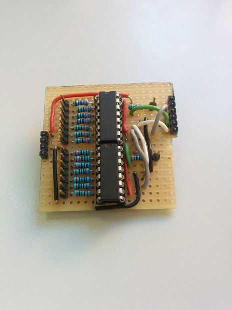 Soldar primero las tomas para la IC. Poner el ICs dentro. Luego suelde las resistencias y el pin tan cerca de los zócalos.