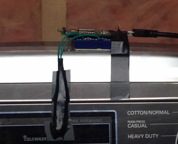 Monte el LDR a una ubicación que tiene un LED que se enciende cuando una carga se inicia y se apaga cuando se detiene la máquina. Para mi maquina, hay una sola luz roja que indica que la máquina de lavandería cubierta/puerta está bloqueada. Se enciende cuando un ciclo se inicia y se apaga cuando detiene. Esta configuración se basa en el LED encendiendo cuando la máquina se inicia y apagado cuando se detiene la máquina para activar el correo electrónico.