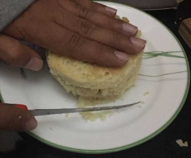 Una vez cocido dejar enfriar y cortar círculos (yo usé tres como mi grueso pastel era densa.)