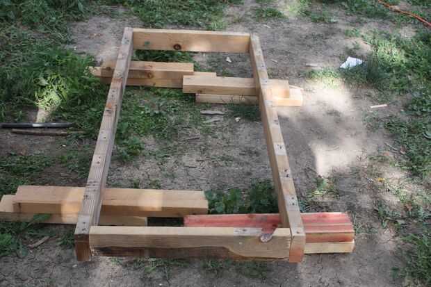 Colocar unos bloques debajo del marco inferior para que al atornillar las patas en el marco de todo el proyecto es de la tierra.