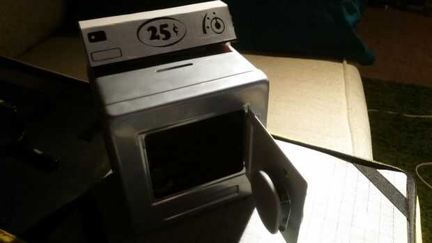 Por último, pegamento o cinta la secadora panel de control en la parte superior de la caja fuerte. Usé cinta de montaje para asegurarse de que quedaría para siempre!