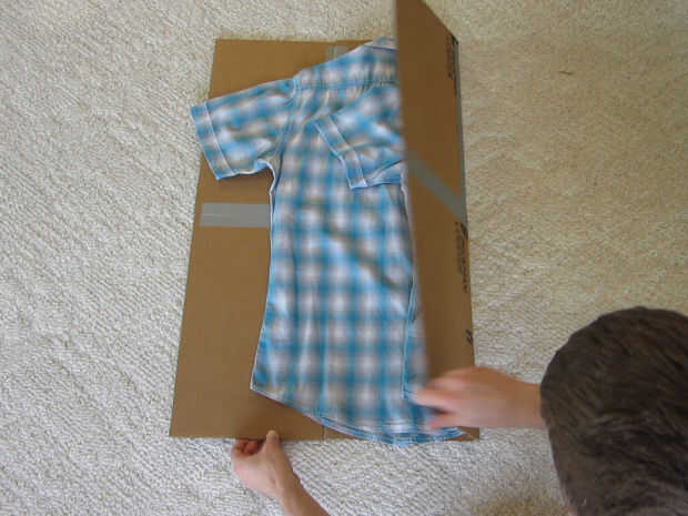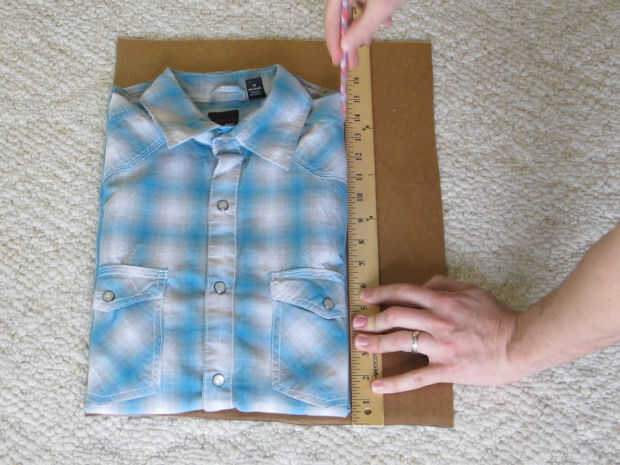 2. Coloque una camisa doblada en uno y delimitar su tamaño usando una regla.