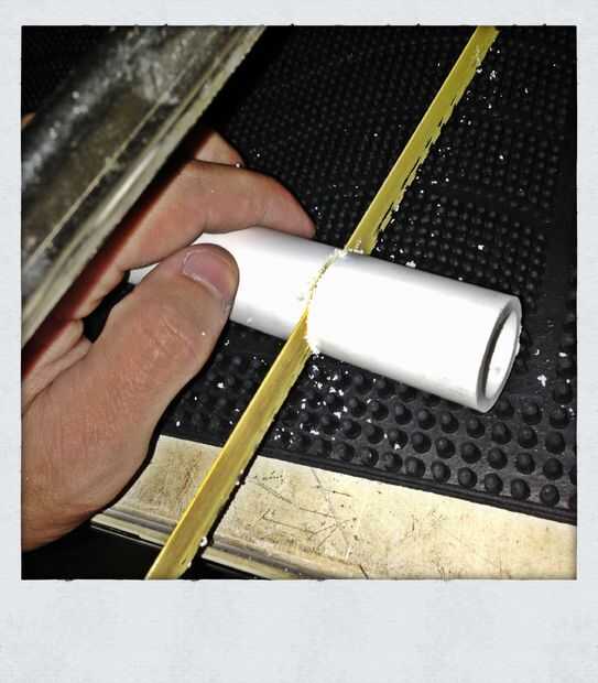 Corte su tubo de 3/4" PVC para hacer dos piezas que miden aproximadamente una pulgada cada uno. Este es el único paso que usará su sierra o la sección larga de la pipa, así que usted puede elegir poner ahora. Limpiar como ir, pero a cada uno su propio.