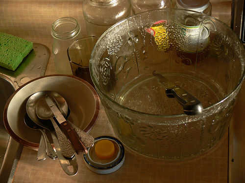 Rápidamente lavar platos con una cantidad mínima de agua fría.