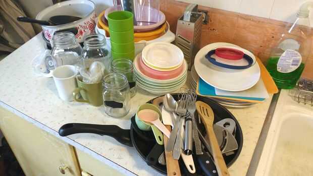 1. ordenar rápidamente todos los platos a lo largo de su encimera por tipo: plana cosas juntos (placas pequeñas y grandes, platos, tablas, tapas de ollas, tapas de tupperware, etc.); Tazones de fuente y lavabos juntos (tazones de fuente, tupperware, mezcla de tazones de fuente, etc.); TAZAS de bolsas de plástico y juntos; ARTÍCULOS grandes "menos uno" (ollas y cacerolas, sartenes, hojas para hornear, piezas del aparato como alimentos procesador, licuadora o extractor de piezas, etc.); y finalmente los utensilios en el último gran elemento (esto incluye cubiertos, utensilios de cocina, tazas/cucharas, insertos para aplicaciones tales como las diferentes láminas para un procesador de alimentos de medida, etc. en el último "menos uno" grande del artículo de arriba... esto podría ser una olla, sartén o bandeja para hornear. Si usted no tiene ningún "elemento grande" a ponerlo, entonces simplemente cobrar todo en una taza, o lo que sea... "peor caso escenario", recogerlos en el mismo lugar en la encimera jejeje).