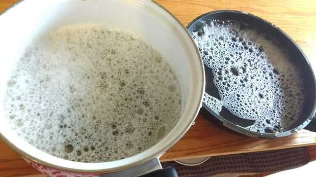 1B. Llene cualquier super-stuck-en ollas/cacerolas o platos para hornear con agua jabonosa caliente (que cubre sin embargo alto alcanza el pegado-en-ness) y ponga a un lado. Eso es todo amigos. No loco tónicos o agua hirviendo en el artículo sobre la estufa para siempre. Esto es todo lo que necesitas. Al llegar a la parte de artículos grandes del paso de lavado, estos deben ser fáciles de simplemente Limpie con la esponja.