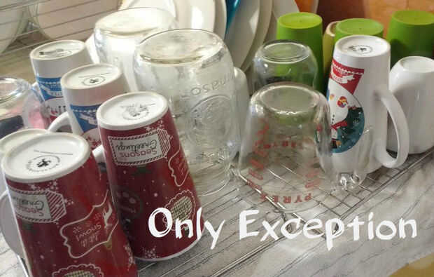 LA única excepción: Si tienes manera de demasiadas tazas para escurreplatos y tienen a ponen en la encimera, poner estantes de refrigeración por debajo de las tazas (como los utilizados para la cocción) para evitar que problemas como los mencionados. Ingenioso!