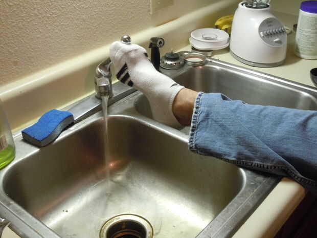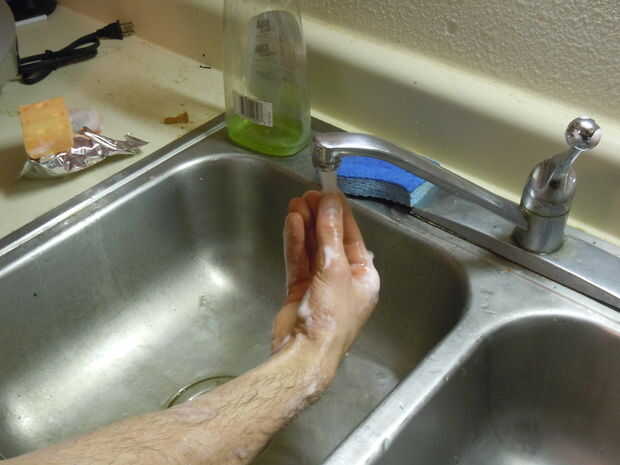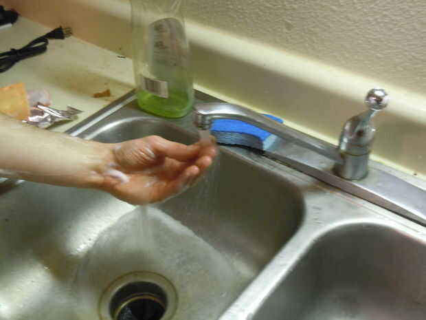 ADVERTENCIA: Asegúrese de no tocar del fregadero, ya que es impuro y es estériles. Tenga cuidado de no caer o la tensión a ti mismo si tratando de encender el grifo con el pie. En lugar de esta opción, pide a alguien que lo haga por usted o dejar la llave en todo el tiempo que usted está preformado scrub.