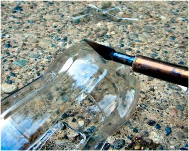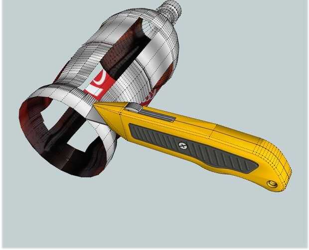 Corte la parte inferior de la botella como se muestra, dejando un margen de apoyo de plástico