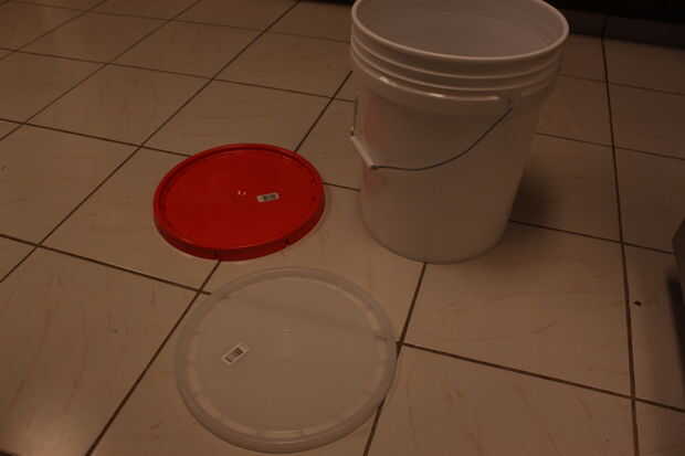 1: cubo de 5 galones. $3 Si tienes un cubo repuesto colocación alrededor de usted puede utilizarlo, he visto lo que puse en mis cubetas de repuesto y decidieron comprar una nueva. Había una versión naranja brillante de este cubo del que no tengo porque me gusta mejor blanco y era un dólar más barato. También puede reutilizar un balde de gatos.